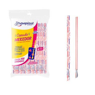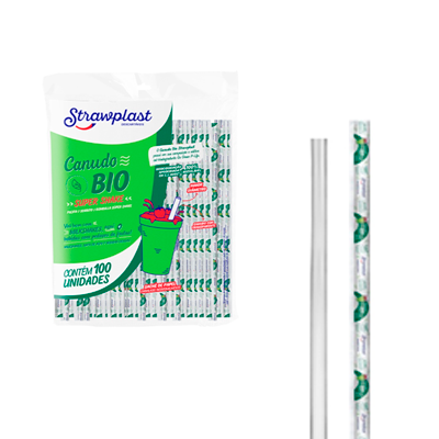 Canudo Bio Vitamina Sachê Transparente com Listra 8MM Com 100 Unidades