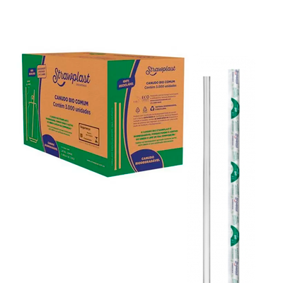 Canudo Bio Comum Sachê Papel 5MM Granel Cristal PP Com 3000 Unidades