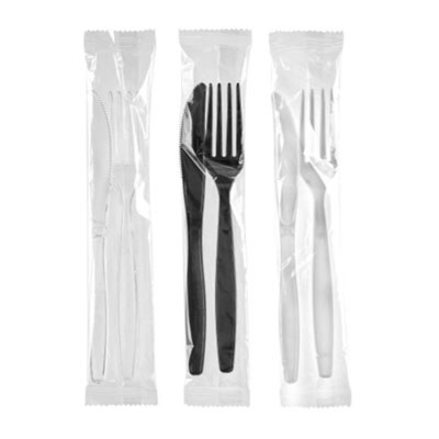 Kit Sache Garfo e Faca Forte Com Guardanapo Branco Granel Com 50 Unidades