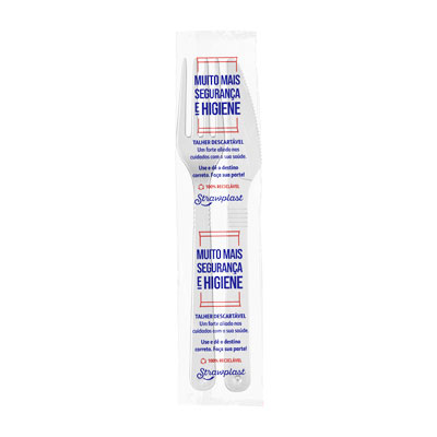 Kit Sache Garfo e Faca Forte Branco Praticsafe Com 10 Unidades