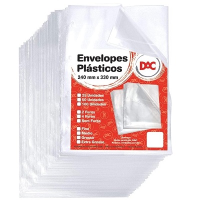Envelope Plástico Grosso Ofício 4 Furos Com 50 Unidades -Dac