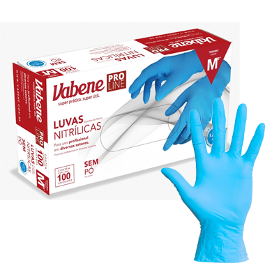 Luva Nitrílica Azul Sem Pó Tamanho M Com 100 Unidades CA 45.345 – Vabene