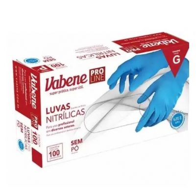 Luva Nitrílica Azul Sem Pó Tamanho G Com 100 Unidades CA 45.345 – Vabene