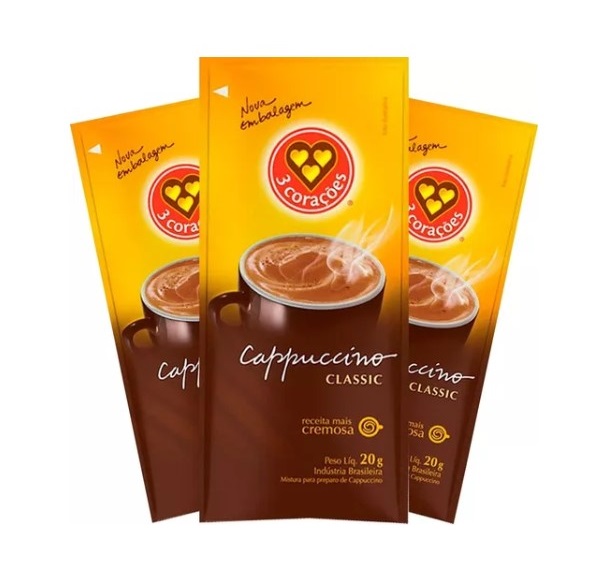 Ícone da cafeteria italiana no mundo, no Brasil o nome é Cappuccino 3 Corações resultado da criatividade brasileira.