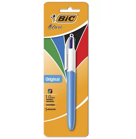 A caneta esferográfica BIC 4 Cores é um ícone de mercado! Muito prática: com apenas um clique no botão você seleciona a cor que deseja – azul, preto, vermelho ou verde. Possui corpo azul opaco e ponta média de 1 mm – largura da linha 0,4 mm. Qualidade e eficiência, não trava durante o uso e escreve de 2 a 3km. Com a linha de materiais da BIC você garante toda a qualidade necessária para realizar suas tarefas diárias e trabalhos impecáveis.