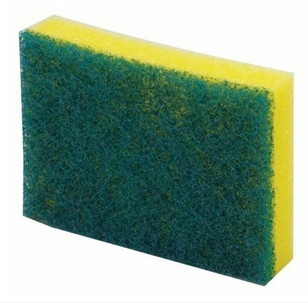 Limpeza geral em cozinhas industriais, restaurantes e similares e indústrias de alimentos; – Possui dupla ação, o lado verde atua na limpeza da sujeira pesada enquanto que a espuma amarela limpa a sujeira leve de peças delicadas como porcelanas, vidros e etc.