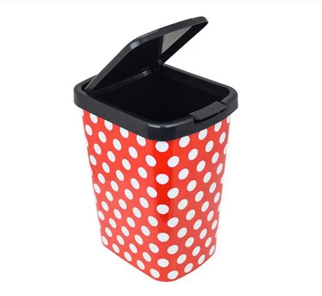 Lixeira 9 Litros Com Click Label Poa Vermelha – Arqplast