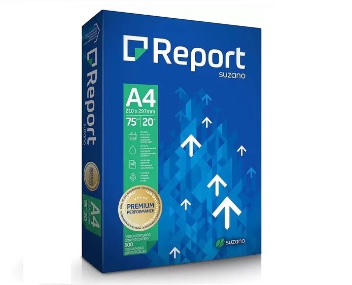 – O sulfite REPORT é produzido a partir de florestas 100% plantadas e renováveis e suas fibras são tratadas para obter o mais alto grau de brancura. O sulfite REPORT garante 99,99% não atolamento em impressoras.