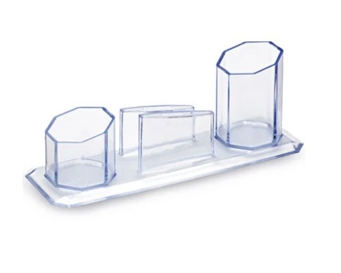 Porta Caneta/Clips/Lembrete Triplo Cristal – Maxcril