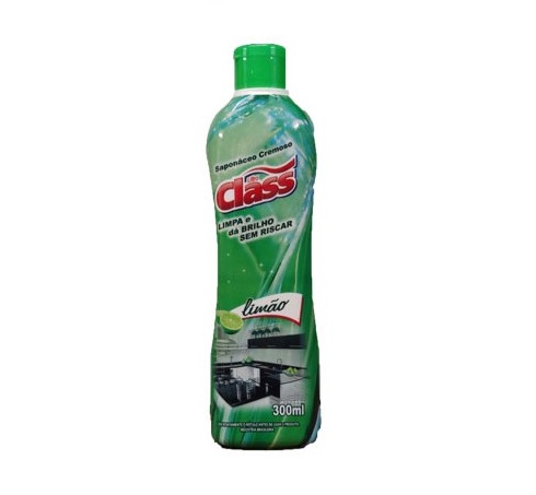 O saponáceo cremoso Class foi desenvolvido para ajudar na limpeza dona de casa, sua fórmula consiste em limpar superfícies como louças sanitárias, pias, cubas, mármores, granitos, balcões de inox, azulejos e lajotas.