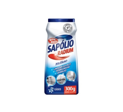 Por isso indicamos o Sapólio Radium em Pó Clássico da Bombril, que é indicado para limpar azulejos, granitos, lajotas, cubas, box do banheiro, pia da cozinha, torneira e balcão.