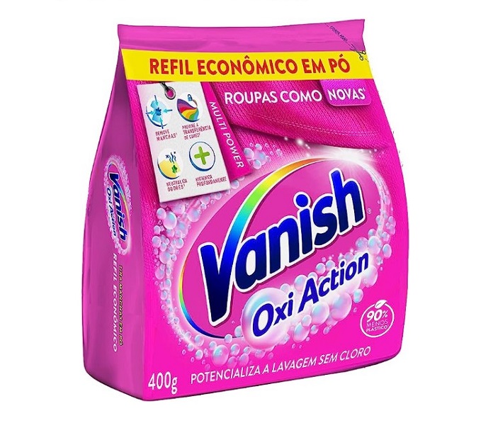 E uma ótima vantagem é que dá pra escolher tipos com ou sem perfume. O Vanish Multi Power Oxi Action, além de ser eficaz na remoção de manchas do dia a dia, como de café, chá, frutas vermelhas, manteiga e chocolate, também remove manchas mais difíceis como suor, colarinho, punhos, café, vinho e batom. Tudo isso sem danificar as roupas, pois não contém cloro.